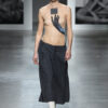 This veil top turns subtlety into a form of visual tension. Its sheer, skin‑toned layer becomes a quiet stage for a single, hyper‑real 3D‑printed hand that reaches across the torso, creating the uncanny impression of touch suspended in time. The effect is both intimate and sculptural – an exploration of presence without weight, gesture without movement. The top’s minimal construction allows the artwork to breathe, letting the hand become the focal point of an otherwise whisper‑light silhouette.
