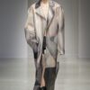 Ethereal yet assertive, the trench challenges traditional tailoring through a lens of transparency and fluidity. Cut in a sheer, softly structured fabrication, the jacket drapes effortlessly over the body, revealing layers beneath while maintaining a refined, elongated silhouette. A wide notched lapel anchors the design, lending classic trench codes to an otherwise experimental form. Subtle tonal shifts ripple across the surface, creating a sense of movement and depth as the garment glides down the runway. Lightweight and architectural, this piece blurs the boundary between outerwear and second skin – an exploration of vulnerability, modern elegance, and quiet provocation.